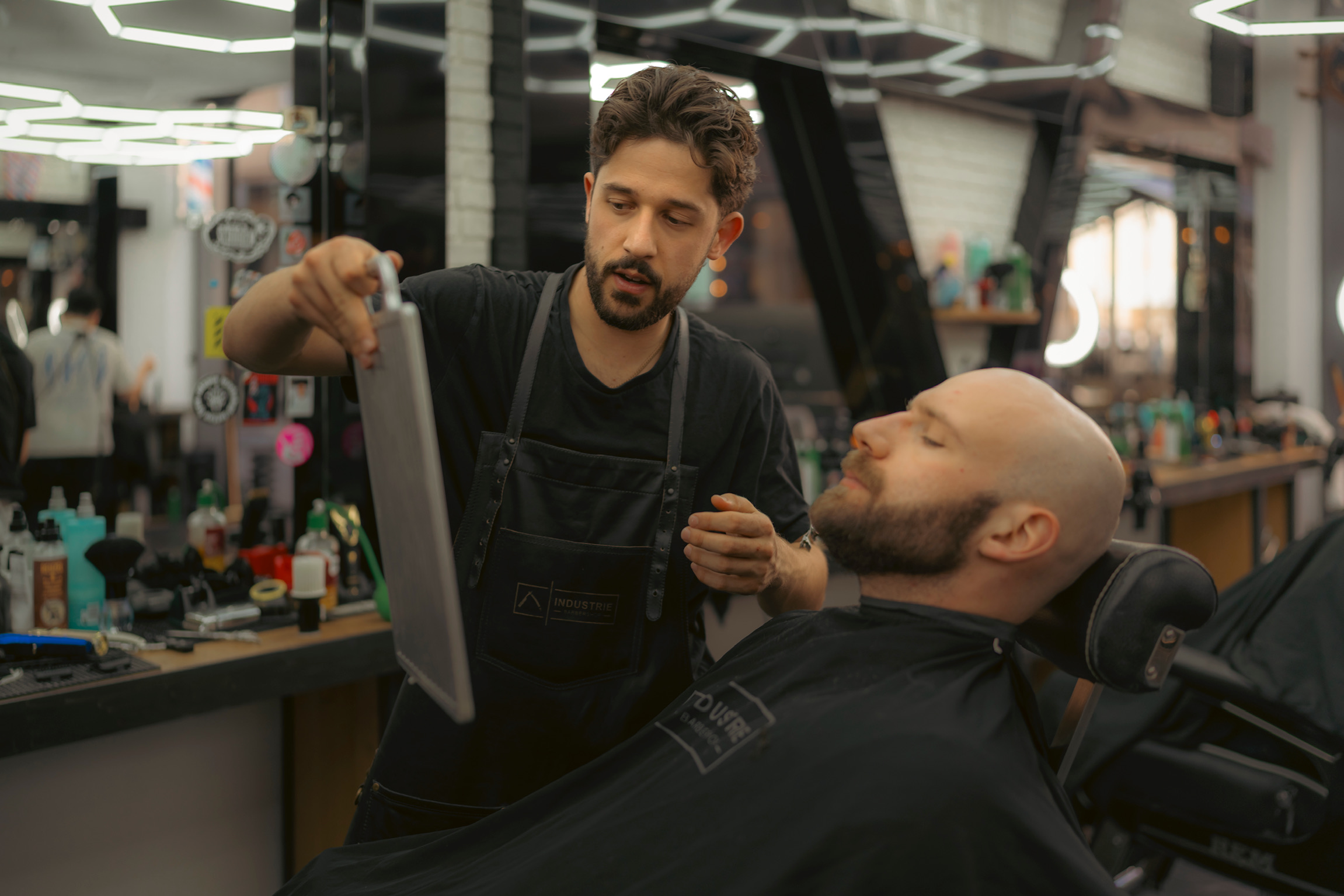 Chez INDUSTRIE Barbershop, nos barbiers utilisent des tondeuses haut de gamme réglées au demi-millimètre pour un résultat parfait, durable et personnalisé.